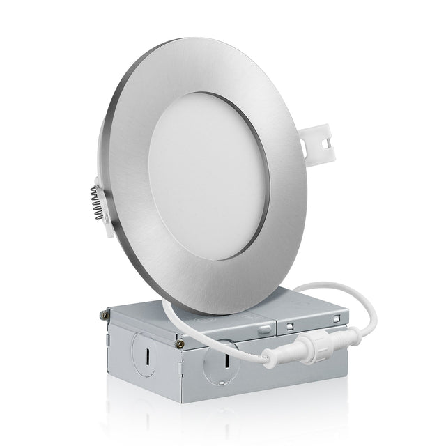 4 Inch Recessed LED Lighting, Slim, Single CCT, Silver Trim