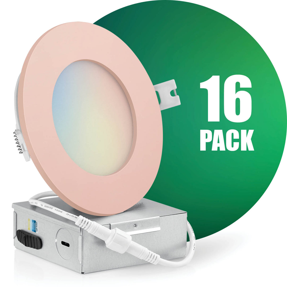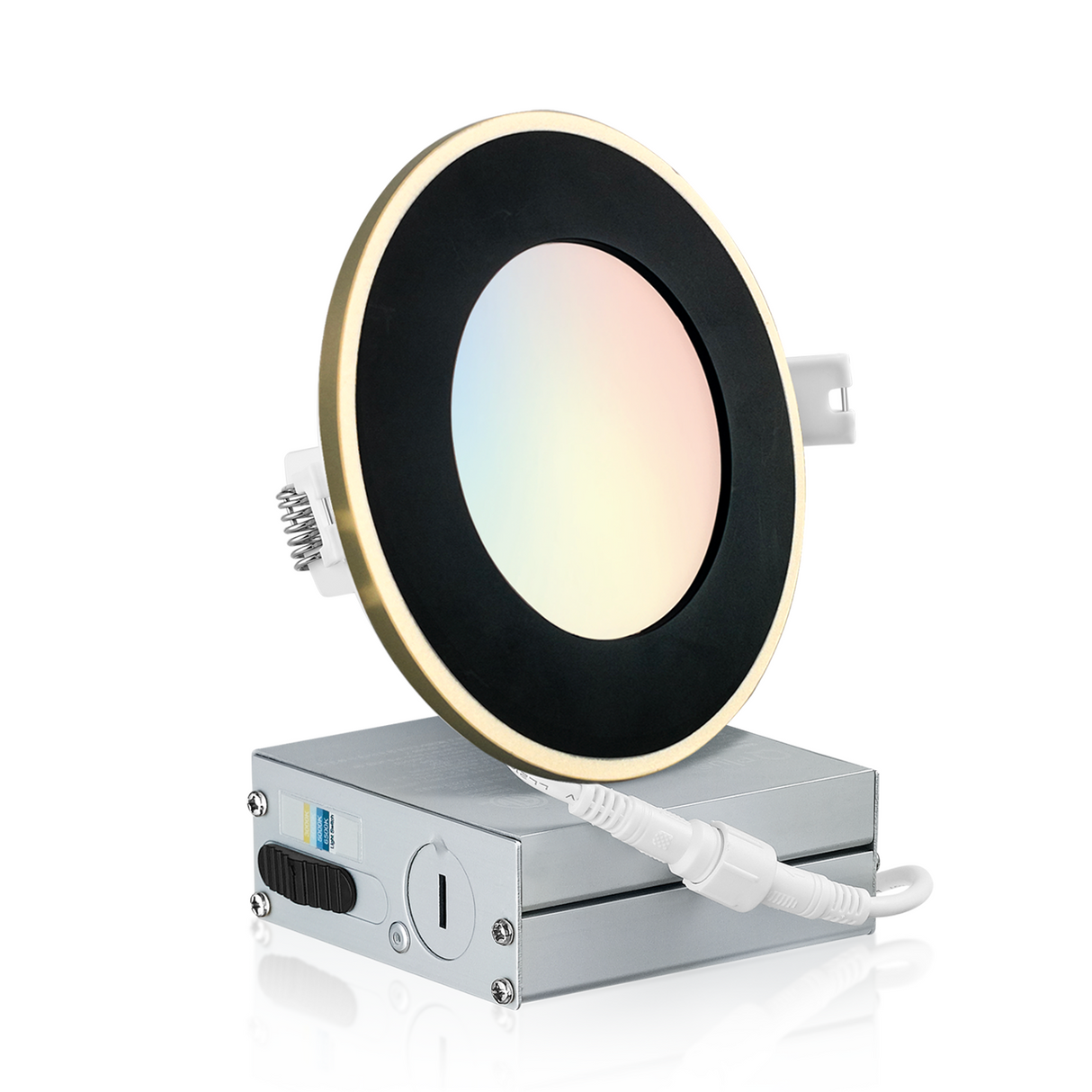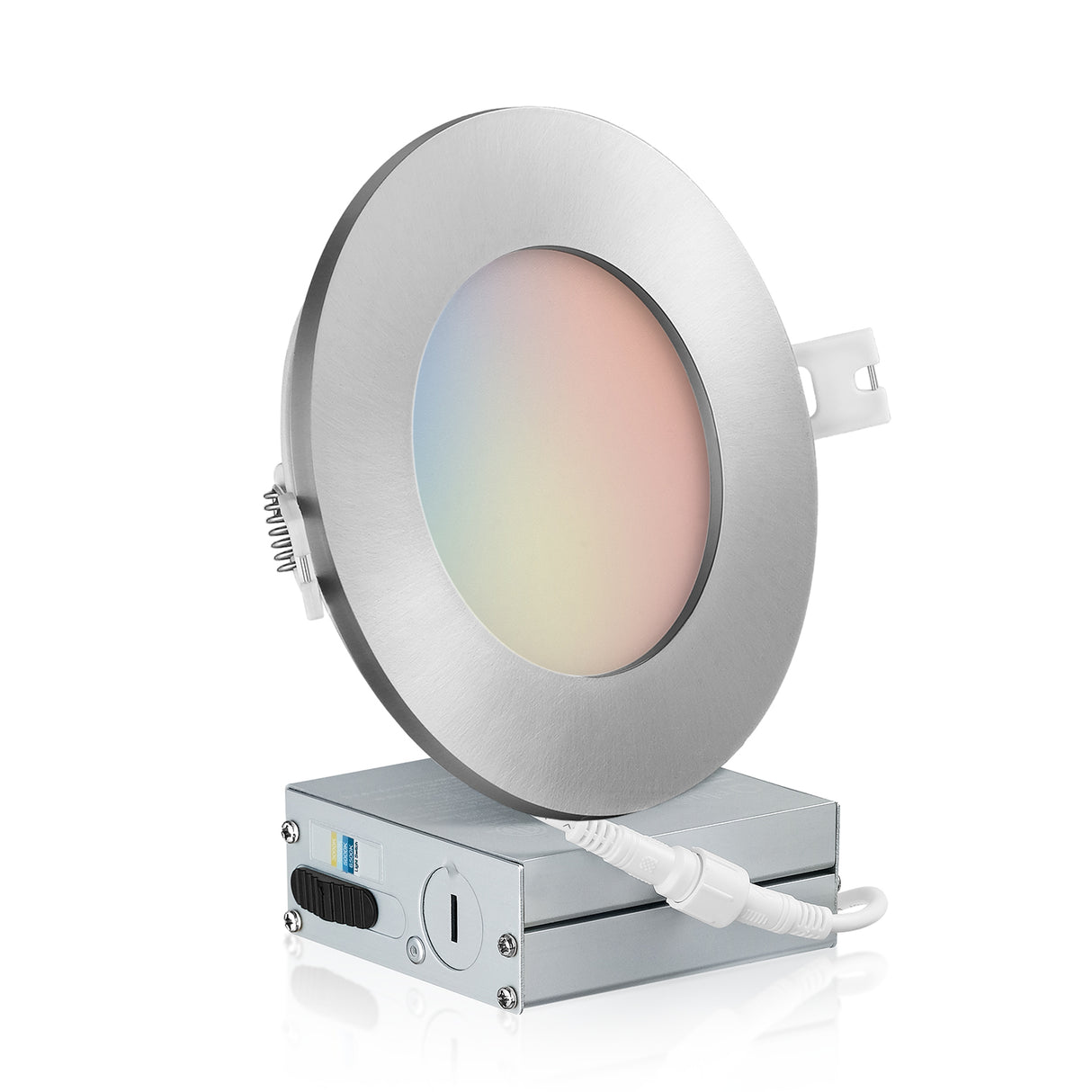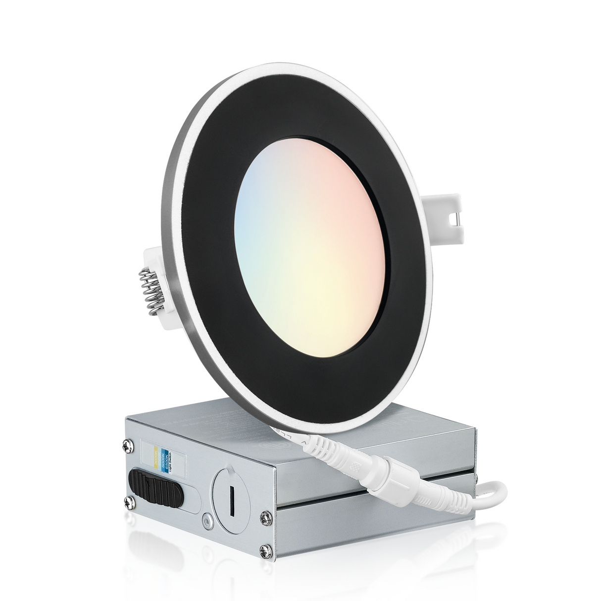 QPLUS Panneau mince encastré de 4 pouces à température multicolore réglable (température de couleur variable par l'interrupteur mural)