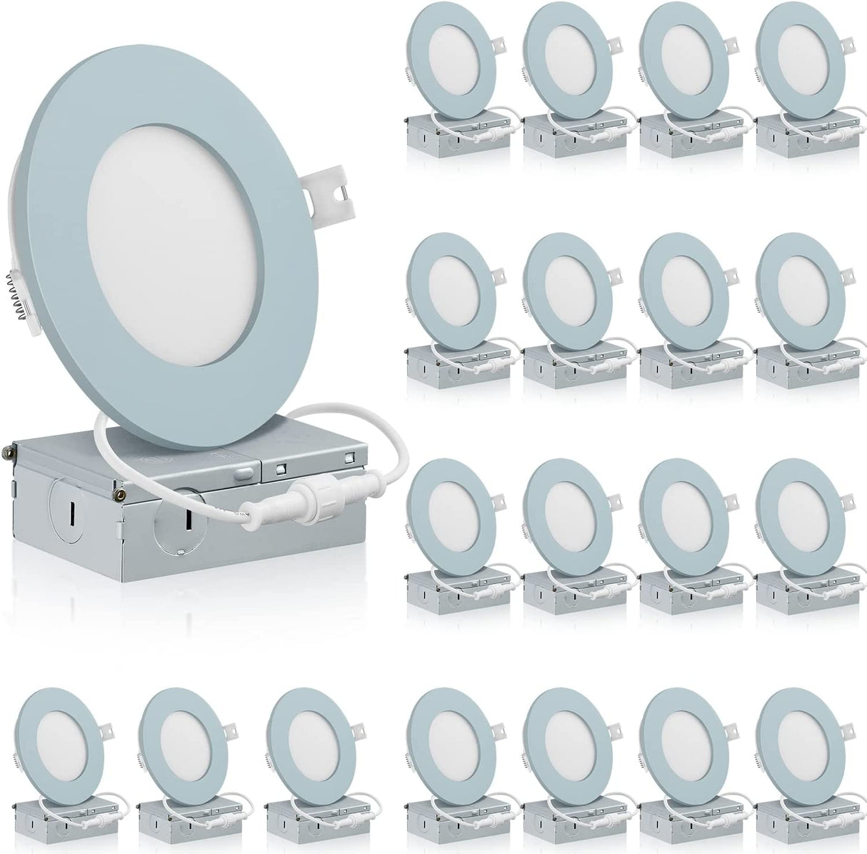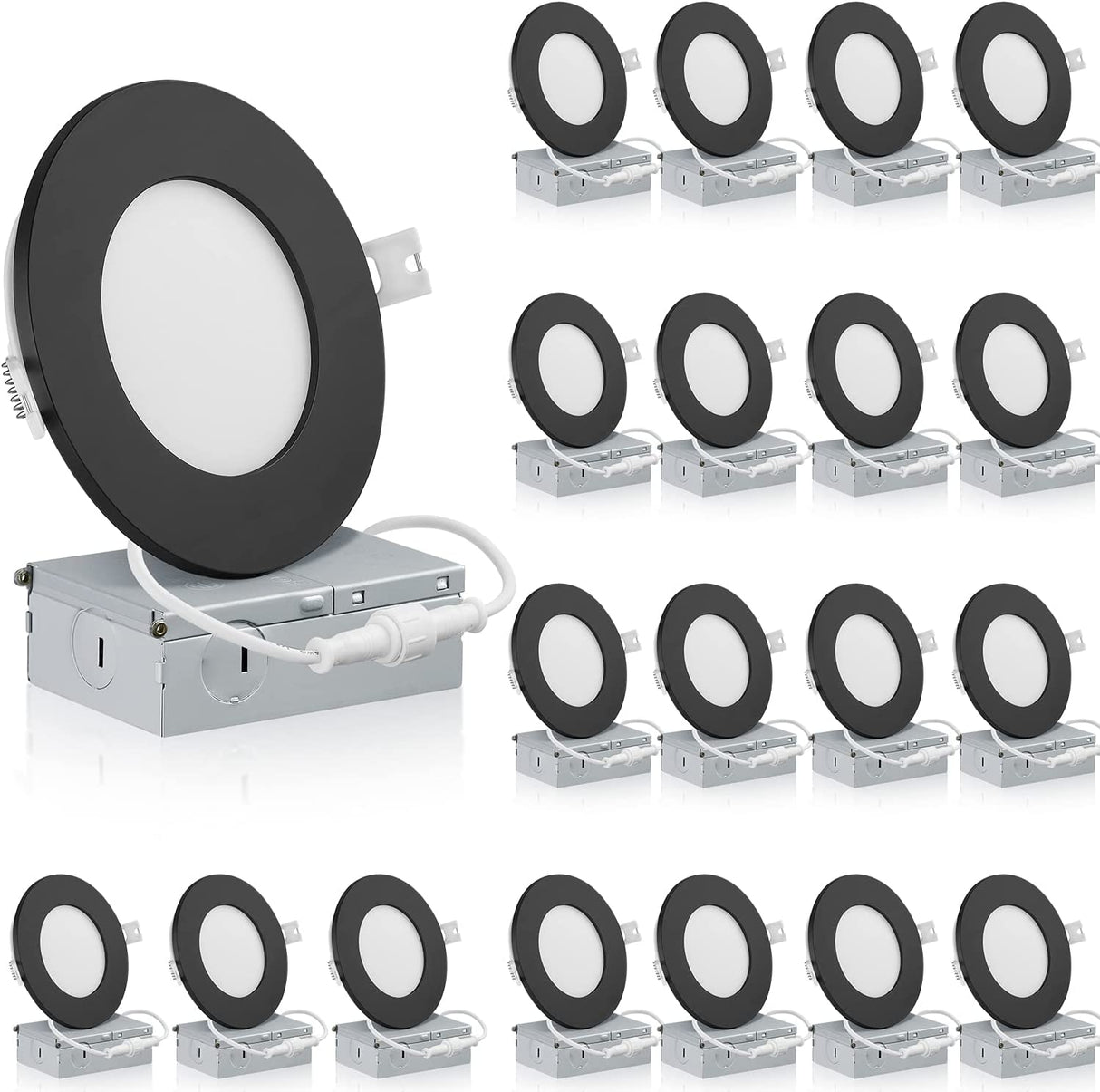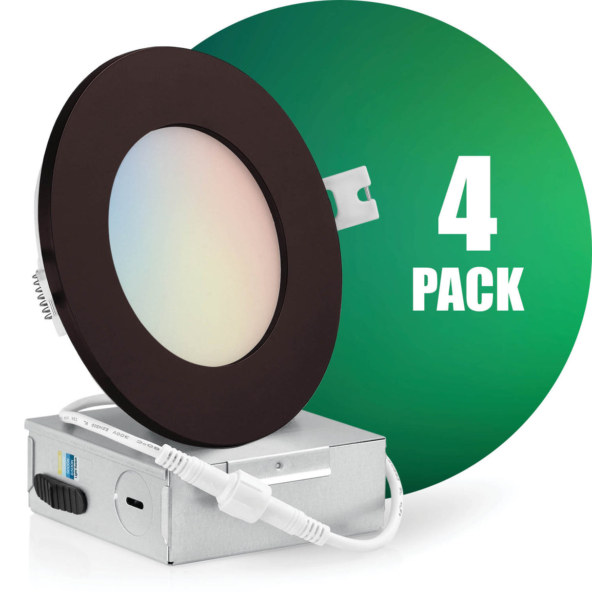 QPlus Lampe LED encastrable fine de 10,2 cm avec boîte de jonction en métal, 10 W, 750 lm, 4 CS (3 000 K/4 000 K/5 000 K/6 500 K/interrupteur), intensité variable, certifié Energy Star, répertorié ETL, classé IC, classé humide, garantie de 5 ans