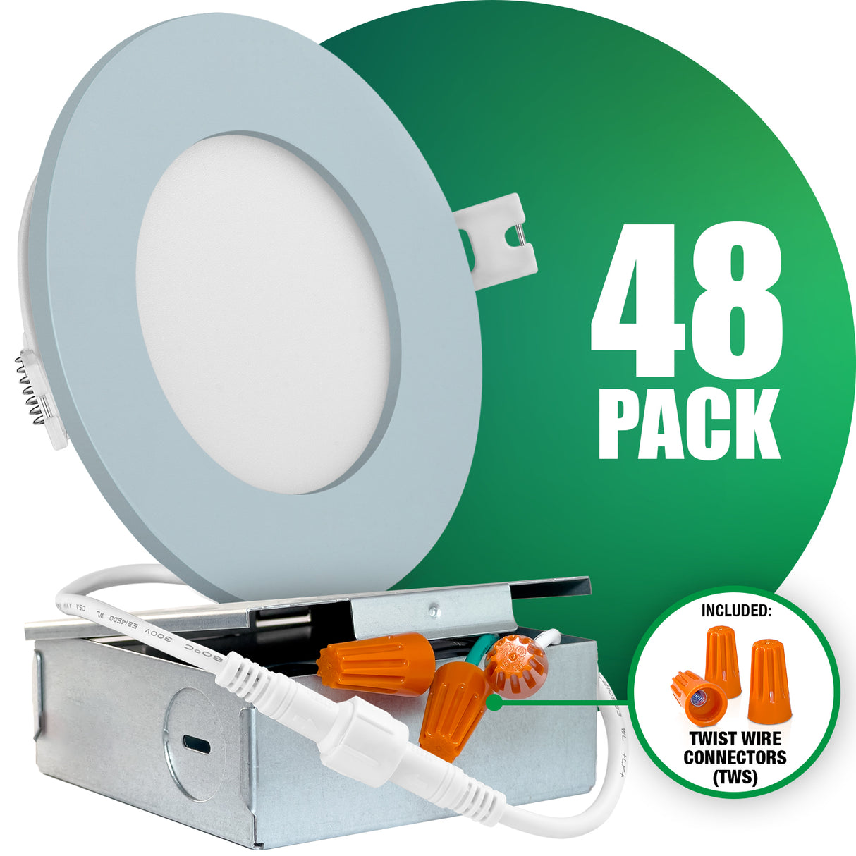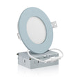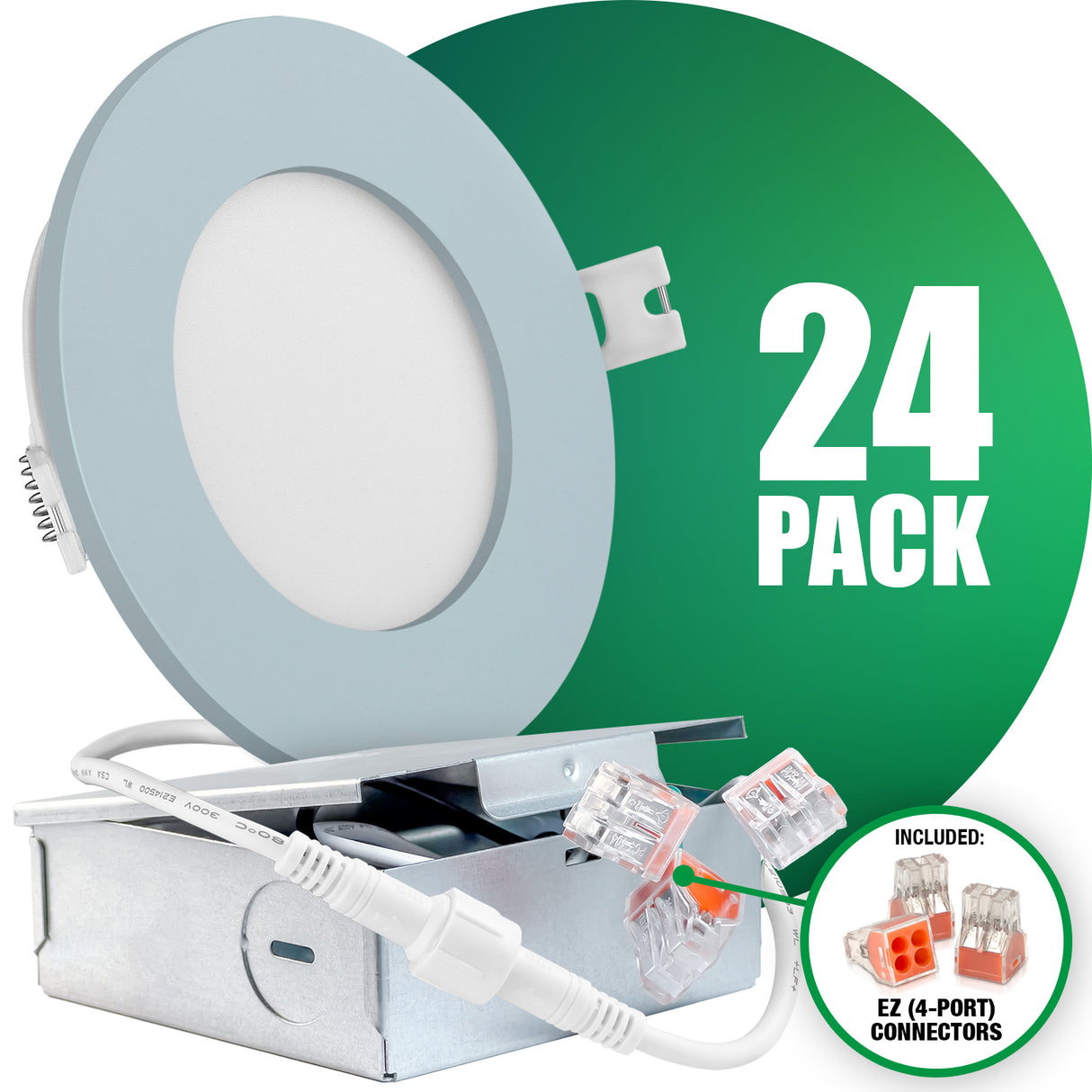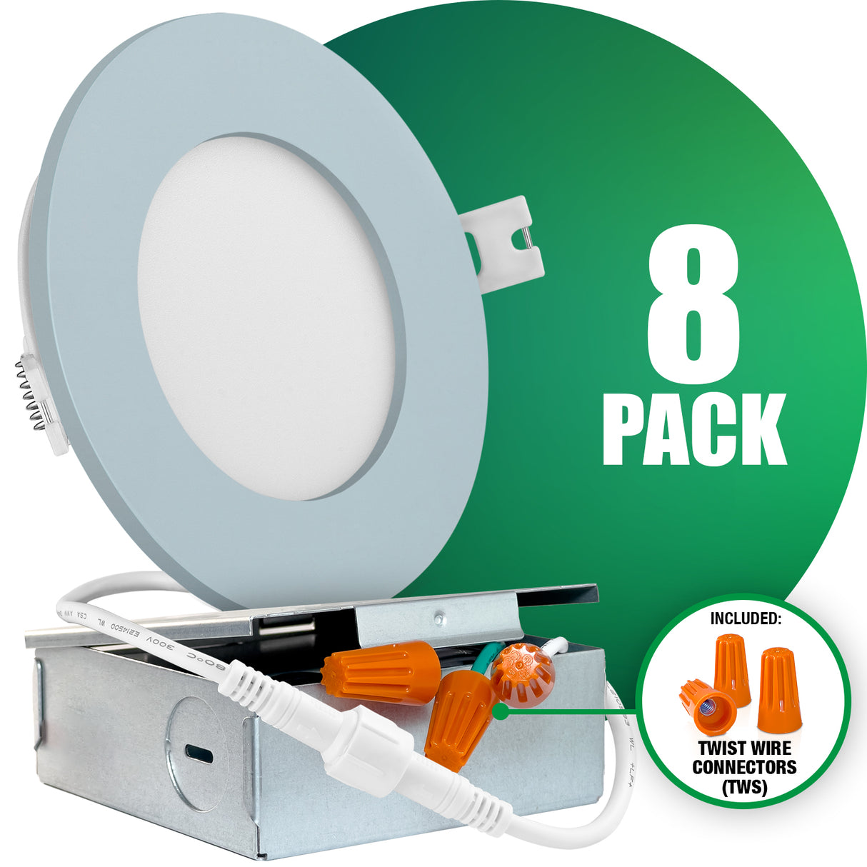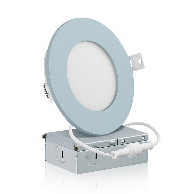 QPlus Spot LED encastrable fin de 10,2 cm avec boîte de jonction en métal, 10 W, 750 lm, CCT unique, intensité variable, certifié Energy Star, homologué ETL, classé IC, emplacement humide, garantie de 5 ans, bordure bleue