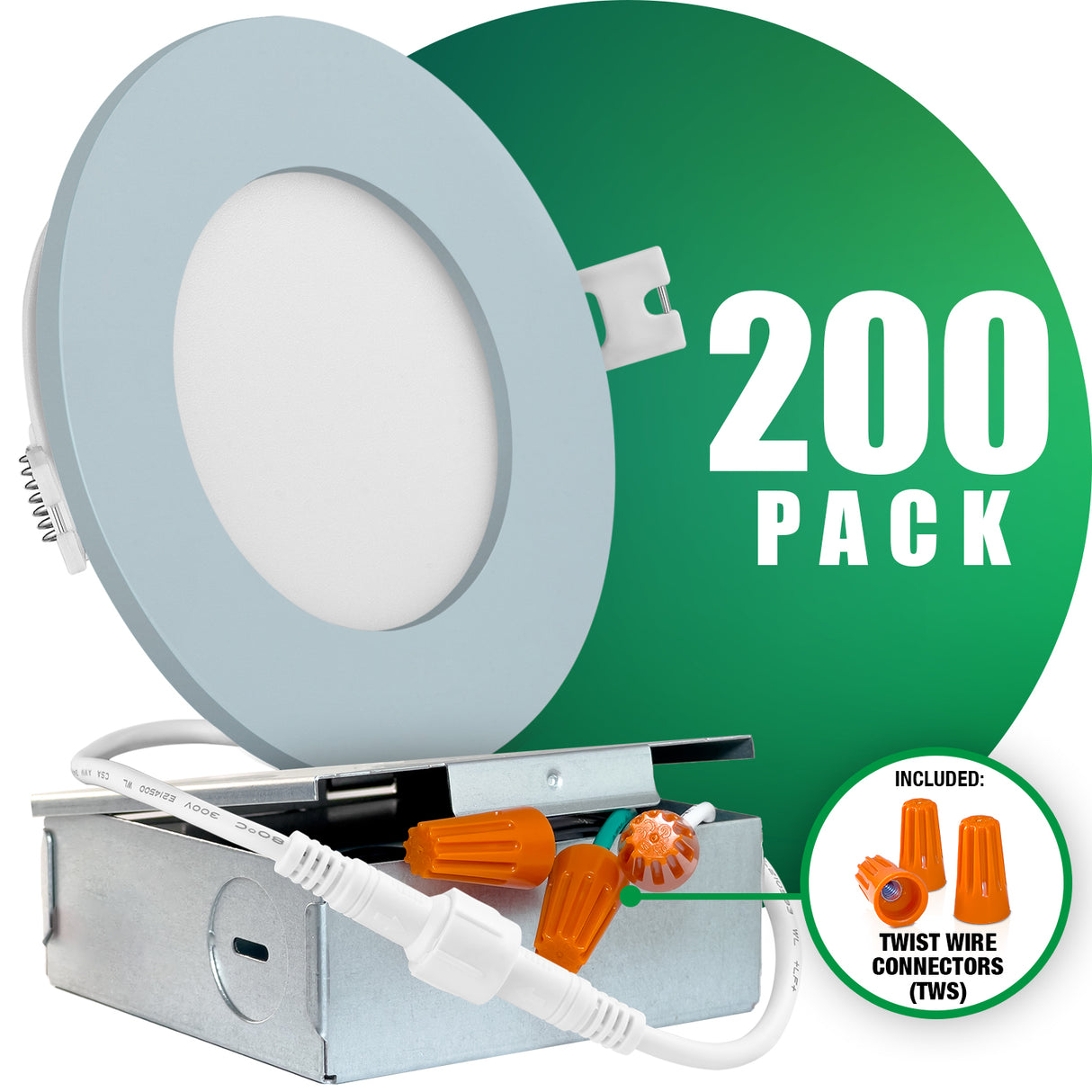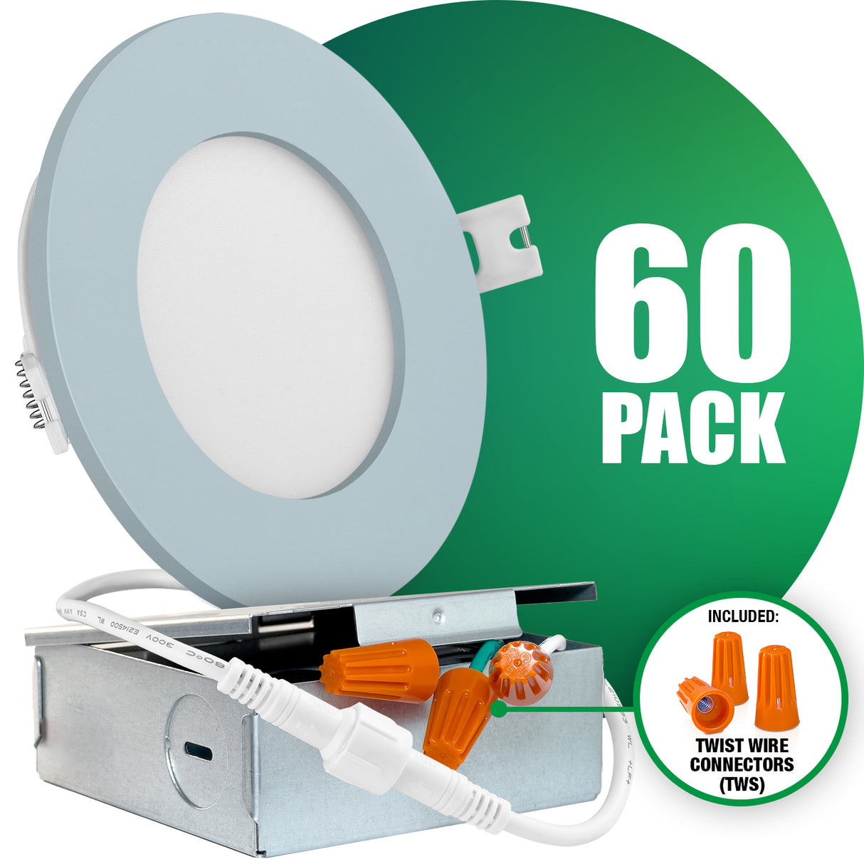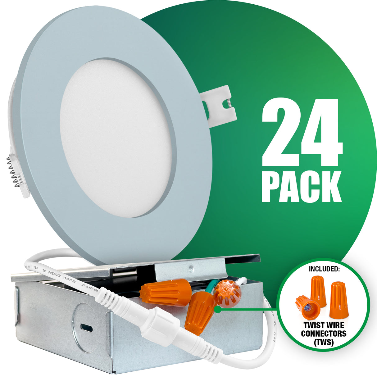QPlus Spot LED encastrable fin de 10,2 cm avec boîte de jonction en métal, 10 W, 750 lm, CCT unique, intensité variable, certifié Energy Star, homologué ETL, classé IC, emplacement humide, garantie de 5 ans, bordure bleue