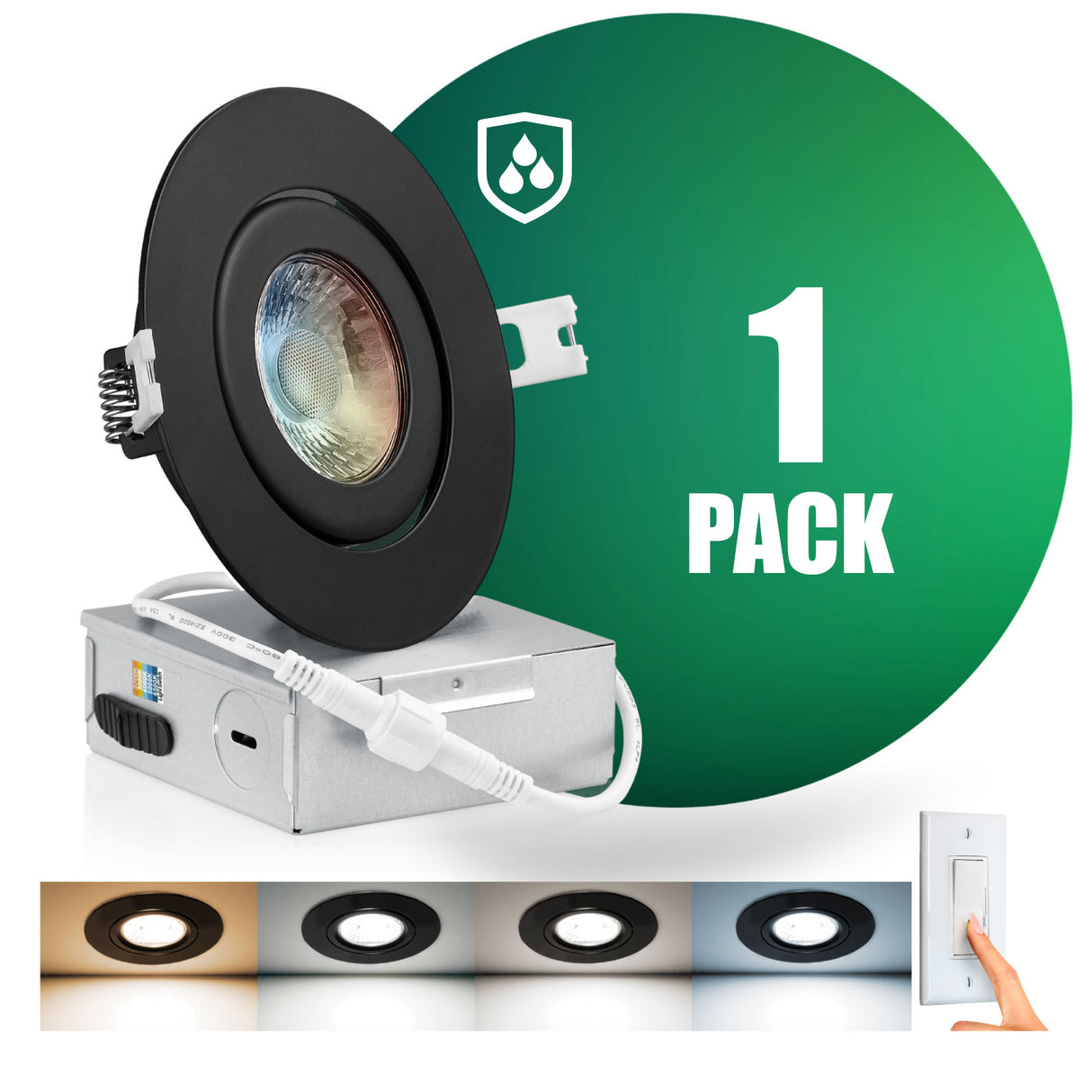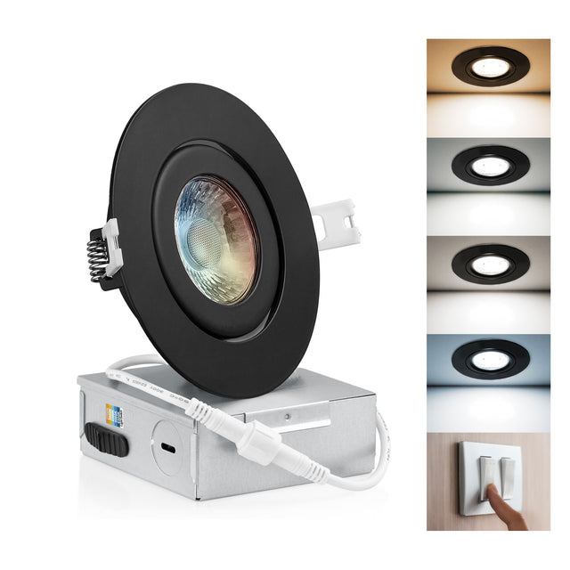 4 Inch Narrow Gap Recessed LED Lighting, Gimbal, 4CCT Color Selectable from Wall Switch, Wet Rated, Black