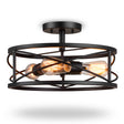 QPlus 14.25 Inch Vintage Semi Flush Mount Ceiling Light Retro Cage Hanging Fixture with 3 E26 Bulb Base - 2nd Gen